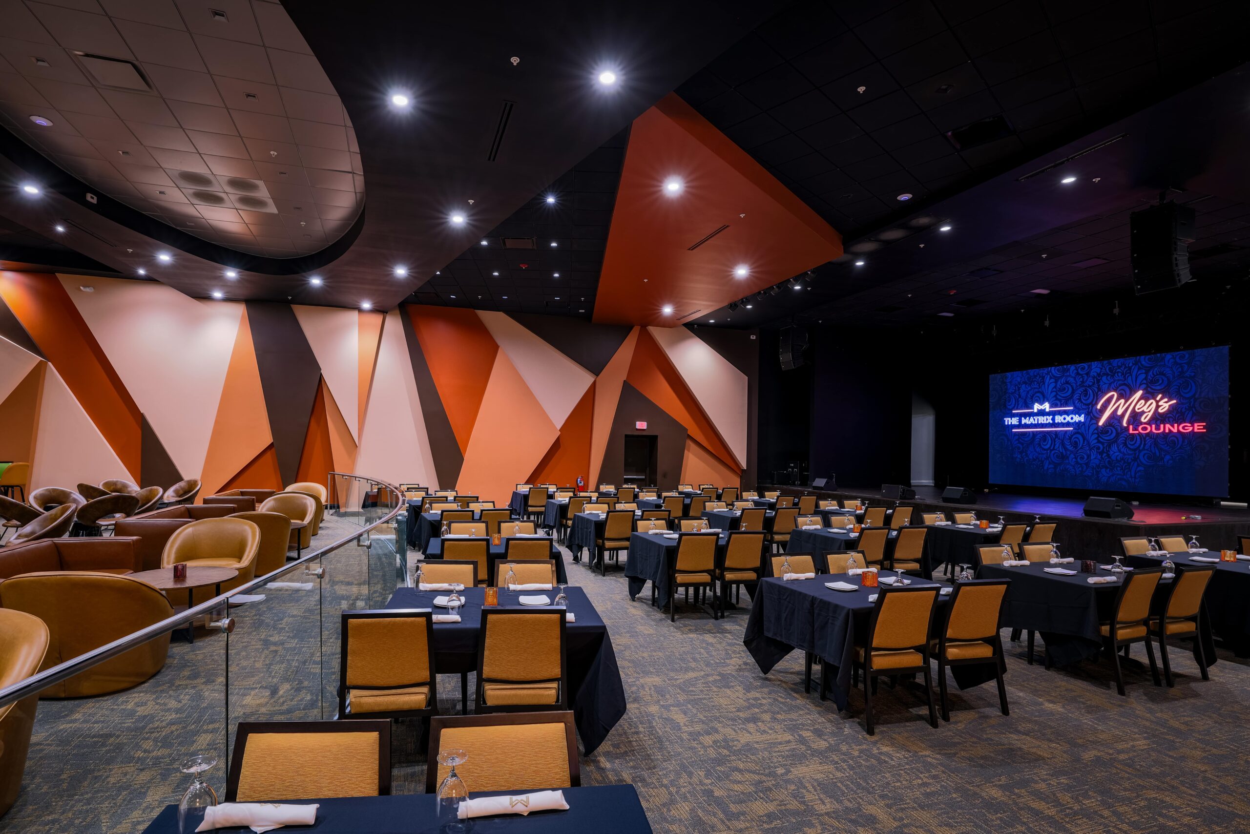 Two smashed burgers stacked with cheddar gruyere cheese, lettuce, tomato, shaved onions and house made pickles with our matrix sauce on a brioche bun
