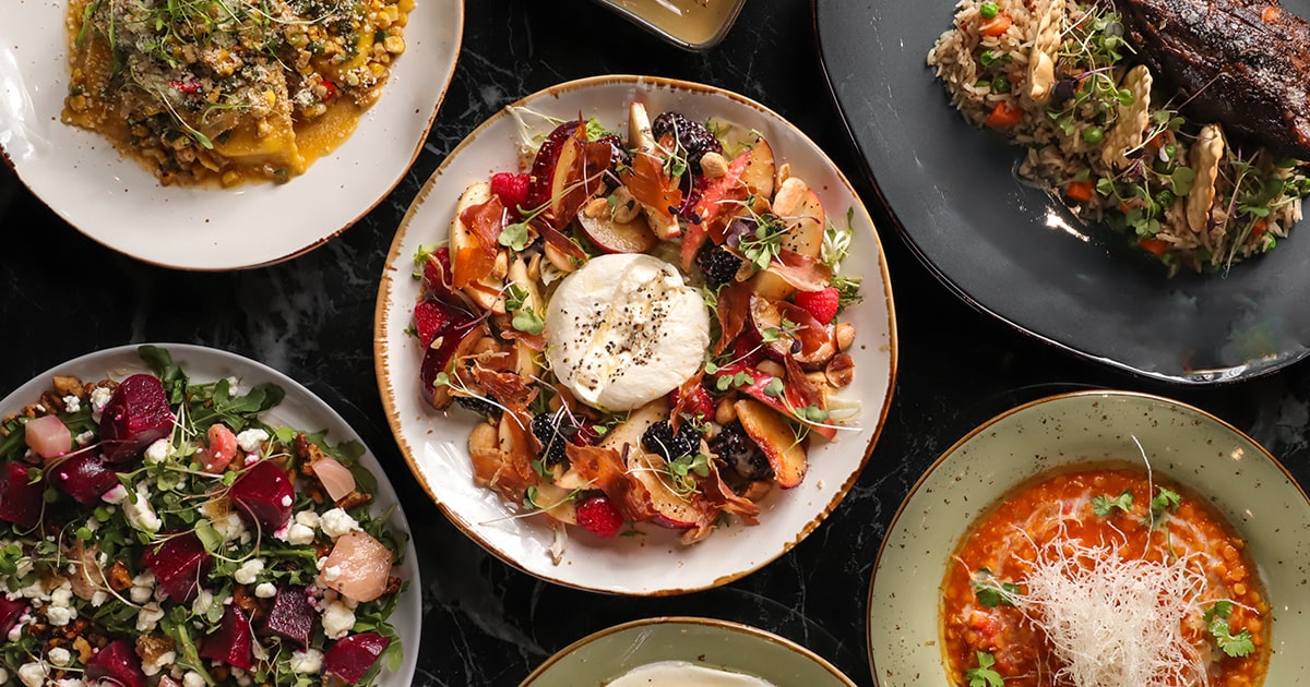 A blend of spinach, kale, brussel sprout, arugula with candied walnuts, summer berries, goat cheese and toasted pumpkin seeds with a raspberry vinaigrette
