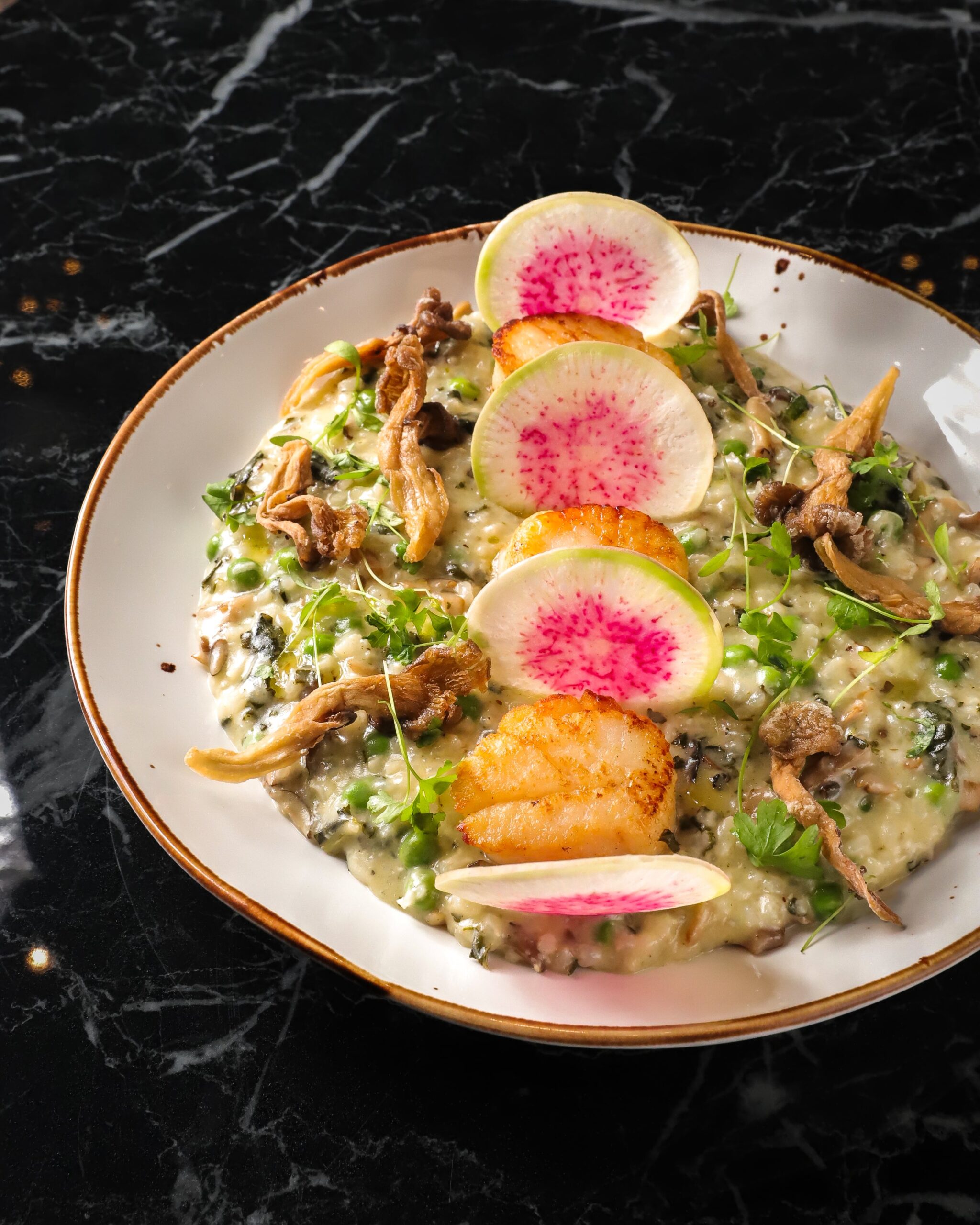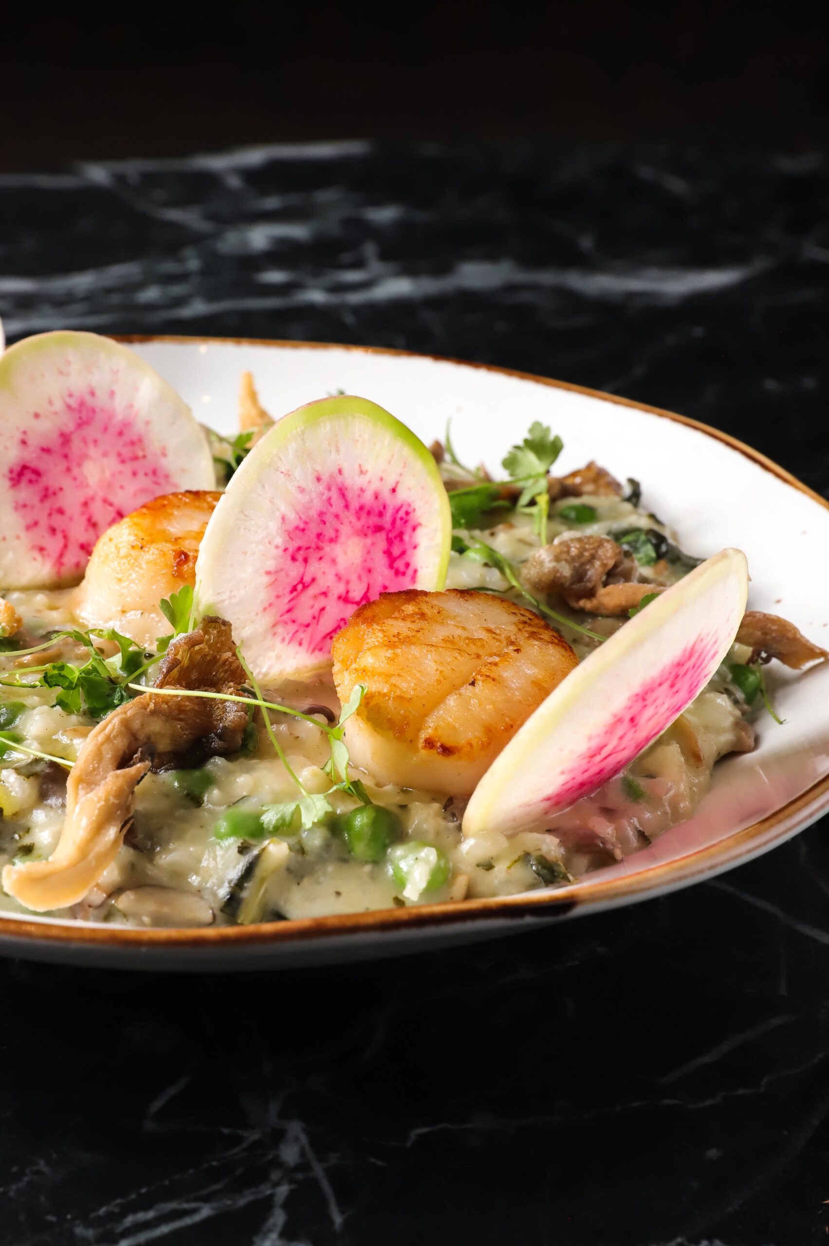 Pan-seared, served with a creamy summer succotash